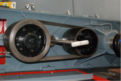 The original gearbox was, and still is, belt driven and SBT fully overhauled the drive wheels and fully refurbished the eccentric adjustment mechanism on each belt.