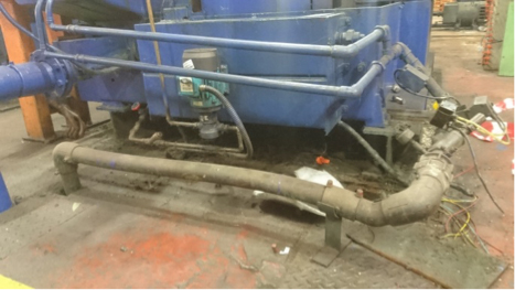 Suitably trained SBT site engineers used cutting equipment to cut the existing lift straps near the top yoke fabrications, and then used portable hydraulic equipment to separate the old lift straps from the sluice, and the yokes, from the gudgeon pin. Finally the primary gudeon pin was removed from the main lift shaft. All items where then returned to SBT workshops for overhaul.