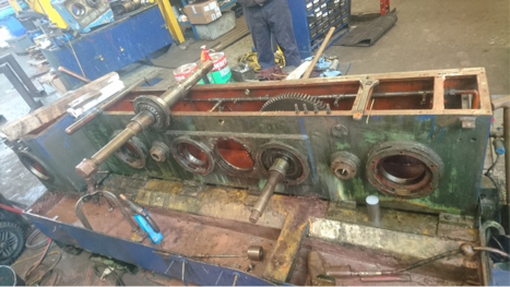 Following removal from site and transport back to SBT workshops the gearbox was disassembled and inspected for damage. Although the gear set was in remarkably good condition, the housing and ancillary troughs and sumps were in need of significant renovation.