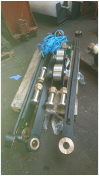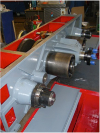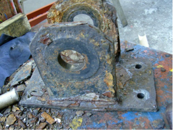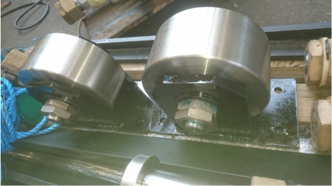 The wheel assemblies were disassembled at SBT workshops and the wheel support brackets were obviously far too corroded to be reused. SBT therefore refurbished the stainless steel wheels and fabricated 2 new wheel support brackets.