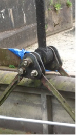 New, free issue lift straps were fitted to the sluice gate. The refurbished gudgeon pin and refurbished yokes were fitted to the threaded lift shaft. The new wheel brackets, along with the refurbished wheels, were all refitted in 1 day on site. The gate was raised / commissioned and signed off by the customer.