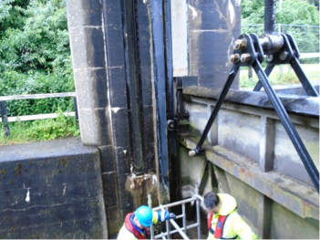 SBT were asked to attend a sluice gate in Northwich that required some repair works. The original 4mtr wide sluice gate raising mechanism needed to be modified by fitting free issue longer lift arms due to problems with the original threaded lift spindle being damaged at its top.
